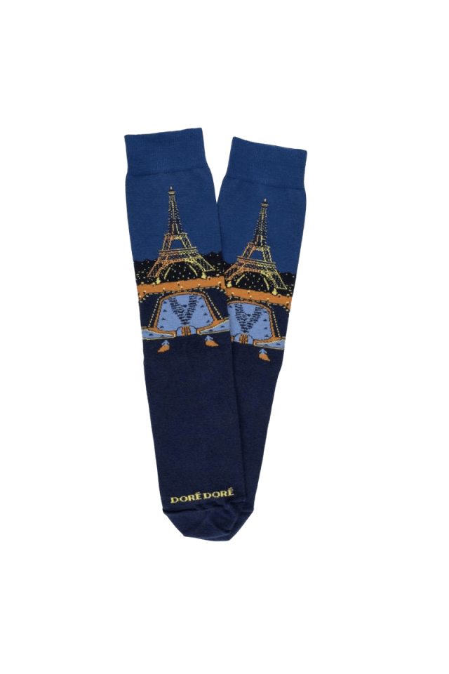 Patterned cotton socks for women with a view of Paris. Colorful, comfortable and of high quality, they fit the foot perfectly and offer great comfort. Versatile and original! Combed cotton refers to cotton passed through a comber to eliminate the shortest fibers and retain only the longest. This gives the cotton more finesse and softness. It comes from Egypt and is considered to be the best cotton in the world. The soils of the Nile Valley in Egypt, perfectly irrigated and rich in silt, provide the ideal conditions for producing fibers up to twice as long as all others, thus allowing the manufacture of yarns of great softness, great flexibility and remarkable strength - Polyamide is a synthetic material, known for its great resistance. It is used in addition to other materials to reinforce the durability of socks - Elastane is a synthetic material, known for its elasticity, allowing socks to be adapted to any type of foot